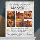 Personalised dog photo plaque featuring a modern marble background, 6 precious pictures of your beloved pet, gold heart pawprints & glitter, the text "in loving memory of", your dogs name, birth/death dates, and the sympathy quote "your presence we miss, your memory we treasure, loving you always, forgetting you never".