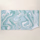 A modern Turquoise Blue Coastal Beach Waves Nautical Marble Effect Swirls Personalised Beach Towel with your name or any text of choice on it. Perfect for a beach vacation or the pool.
