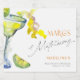 The bachelorette liquor bottle label showcases a vibrant watercolor margarita glass and lime slice on the left, perfectly capturing the "Margs & Matrimony" theme. The design embraces a minimalist style, with colourful accents that balance fun and elegance, reflecting the celebratory tone of the event.