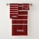 Modern Maroon Deep Red Name Script Stripes Bath Towel Set