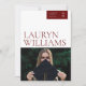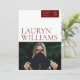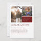 This modern graduation announcement features a single horizontal photo on the bottom accented by large type with the graduate's name. The school name and graduation year are highlighted on the top of the announcement on a maroon background. This graduation announcement has a professional and business orientated look, perfect for highlighting the graduate's successes. The back of the announcement contains two additional photos which can be used to showcase childhood photos of the graduate growing up, along with a space for a longer message. The accent colour can be adjusted to match your school's colours.