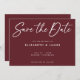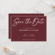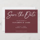 Modern maroon background and white handwritten style wedding Save the Date invitation card. This design features large calligraphy style font that you can change its colour. You can also customise all details and colours on this Save the Date design.
