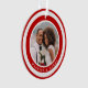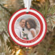 This stylish Christmas photo ornament is perfect for the newlywed couple, celebrating their very first Christmas together! It features a modern circles frame in red and white. Text templates are included on the back for personalisation.