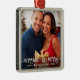Modern Married Merry White Script Photo Metal Ornament