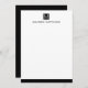 Flat, blank stationery notecards featuring your monogram initial on a black or custom colour square and the name below in a masculine font. At the bottom is a black border. All colours are customisable.