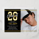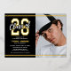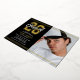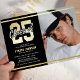 Masculine graduation party invitations featuring a stylish black background that can be changed to fit your personal taste or match your school colours, with a bold real foil gold "25" representing the class year and symbolising the start of a new chapter in life. Plus sleek gold lines running across the top and bottom add a touch of modernity, giving them a sleek and sophisticated look that is sure to catch the eye of anyone who receives them.