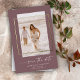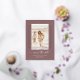 A modern Save The Date design featuring a thin trendy calligraphy script including a real gold foil frame against your awesome picture, against a mauve colour background. Easily customise your personal information along with your photos on the front and back of the card.