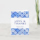 Modern Mediterranean Blue Tile Wedding Thank You Card