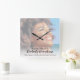 In loving memory memorial clock featuring a photo of your lost loved one, a white overlay, their name, and a sympathy quote for you to customize with your own.