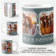 Create a personalized keepsake with a customizable six-photo collage mug, perfect for capturing memories in a unique and stylish way. This mug features space for four smaller photos and two larger ones, each framed by elegant triple white lines that enhance their visual appeal. The design is set against one of my special color backgrounds, identified by a unique 'Cnnn' code, allowing you to mix and match with other items in our range for a coordinated collection. There’s also a dedicated space for a personal message, whether it's an anniversary date, a birthday wish, a memorable quote, or a special location. Regularly updated with new colors, and designs this mug is a perfect gift that can be continually customized to suit any occasion or recipient.