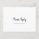 This modern menu choice rsvp postcard is perfect for a rustic wedding. The simple and elegant design features classic and fancy script typography in black and white.
