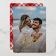 Modern Merriest Christmas Family Photo Name Tartan Foil Holiday Card