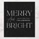 Modern Christmas wine label featuring "Merry and Bright" in white lettering and black background with subtle white dots. Personalise the black and white holiday wine label with your custom greeting and family name in white lettering.