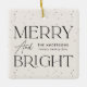 Add timeless style to your tree with this Modern Merry and Bright Cream Holiday Ornament. The front showcases “Merry and Bright” in bold black lettering on a soft cream background with subtle black dots resembling falling snow. Personalise with your family name and year in coordinating black text. The reverse side displays your square photo framed in black, creating a modern keepsake ornament or thoughtful holiday gift.