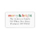Add a festive touch to your envelopes this season with our cute holiday address labels. The custom return address labels features the phrase "Merry & Bright" in gold, orange, blush pink, green, and red modern lettering. Personalise the Christmas labels by adding your name and address. Designed to coordinate with our Modern Merry & Bright Christmas card collection.