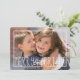 Simple yet modern design that looks great with your photo, features a white border frame with text that reads Merry and Bright with an area you can easily add your names. The back is a grey and white diamond pattern design. Photography © Storytree Studios, Stanford, CA