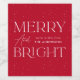 Modern Christmas wine label featuring "Merry and Bright" in white lettering and red background with subtle white dots. Personalise the red holiday wine label with your custom greeting and family name in white lettering.
