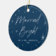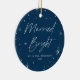 Modern Merry and Bright Script Navy Photo Ceramic Ornament
