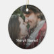 Modern Merry and Married Photo Holiday Ceramic Ornament