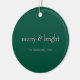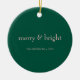 Modern Merry & Bright Christmas Photo Green & Pink Ceramic Ornament