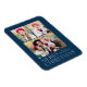 Simple and elegant holiday magnet featuring a 3 photo collage with "Merry Christmas" displayed in white modern lettering on a navy blue background. Personalise the Christmas photo magnet by adding your photos and name.
