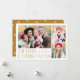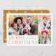 Simple and elegant holiday card featuring a 3 photo collage on the front with "Merry Christmas" displayed in gold modern lettering. Personalize the front of the card by adding your photos and name. The card reverses to display the fourth photo with a white snowflake pattern. The multi-photo holiday card is perfect for displaying all of your favorite family photos!