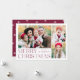 Simple and elegant holiday card featuring a 3 photo collage on the front with "Merry Christmas" displayed in wine modern lettering. Personalise the front of the card by adding your photos and name. The card reverses to display the fourth photo with a white snowflake pattern. The multi-photo holiday card is perfect for displaying all of your favourite family photos!