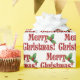 Merry Christmas typography decorated with holly in classic repeat pattern.