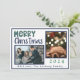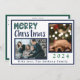 Modern Merry Christmas Argyle Blue Green 3 Photo Holiday Card