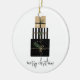 Holiday Christmas ornament featuring the words "Merry Christmas" with a stack of minimal style gifts. Personalise the custom text above. You can also change the background colour. You can find additional coordinating items in our "A Modern Illustrated Holiday" collection.