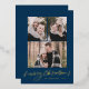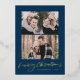Modern Merry Christmas Gold Script Navy 3 Photo Foil Holiday Card
