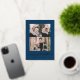 Send warm holiday wishes to family and friends with a gold foil holiday photo card. The modern Christmas card features 3 of your favourite photos with "Merry Christmas" displayed in a hand-lettered gold foil script with a navy background. Personalise the front of the photo card by adding your name and year. The card reverses to a navy blue background with space for your custom message.
