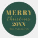 Modern Merry Christmas Green Holiday Packaging Classic Round Sticker