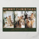 Modern Retro Merry Christmas Foil Holiday Card in Dark Sage Green.