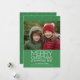Christmas Greens -- Add one horizontal photo to this minimal design with a soft green colour and a mid century modern pattern on the back. The typography is modern and simple with a handwritten looking font to add your family name.