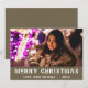 Full photo modern personalizable holiday card for Christmas with personalizable white text on the front. Add your favourite holiday photo to the front of the card and easily change the name and the year. Great for young single people.