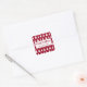 Festive holiday stickers feature a white geometric tree pattern on a maroon background. In a white rectangle across the centre, it reads, "Merry Christmas" in a burgundy red script font above your name in a simple dark red font. Personalise it by adding a custom greeting, family name and/or the year in the sidebar.
