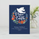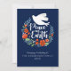 An elegant and modern Christmas card featuring a dove in a floral wreath with the words peace on Earth. The Christmas card is designed in navy blue, white and red. Personalise it with your name, the year, a short message and your family photo on the back of the card. Designed for you by Blackberry Boulevard.