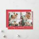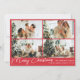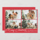 Modern Merry Christmas Red Four Photo Collage Holiday Card