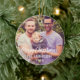 Modern Merry Christmas Script Custom Family Photo Ceramic Ornament