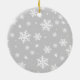 Stylish photo ornament design for the holidays features your favourite family image with Merry Christmas text in modern brushed script lettering. Personalise the custom text with your last name or family name and the year. A simple pattern of white winter snowflakes dresses up the back of the ornament. The neutral light grey background colour can be customised to coordinate with your holiday decor. Photo tip: crop photo to square format before uploading it to the design template.