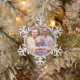 Modern Merry Christmas Script Custom Family Photo Snowflake Pewter Christmas Ornament