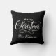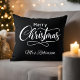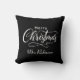 Modern Merry Christmas script throw pillow. The design features the text "Merry Christmas" in white typography with white holly berries and swirl accent elements. Makes for the best personalised gift for yourself, your friends, family members and even neighbours. We have 35+ more Christmas pillows in our collection that you will definitely love. Please check it out and get the best Christmas gift with special wishes for your special people. Merry Christmas!