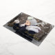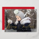 Send joyful greetings with this modern Merry Christmas photo card featuring your favourite horizontal picture framed by delicate snow flurries. “Merry Christmas” is displayed in elegant gold foil script with your family’s name shown below. The back includes a festive red background with white snow dots, or you can customise the colour to suit your style. A simple yet stylish holiday design perfect for Christmas cards.