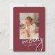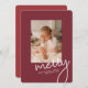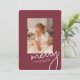 Modern minimalist one photo Christmas card features stylish white merry script and classy burgundy red colours for a simply elegant Christmas greeting card. Personalise the classic greeting with your custom family photo!