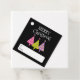 A pretty and modern Merry Christmas gift tag with pink, purple, and green Christmas trees on a black background. You can change the "to" and "from" text.