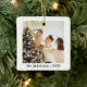 Modern Merry Christmas | Two Photos Ceramic Orname Ornament