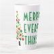 Modern and minimalist style holiday card features Christmas tree with red and green ball ornaments, green "Merry Every Thing" text and white background.