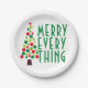 Modern and minimalist style holiday design features Christmas tree with red and green ball ornaments, green "Merry Every Thing" text and white background.
