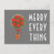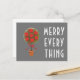 Modern and minimalist style holiday card features poinsettia decorated round topiary tree with white "Merry Every Thing" text on grey background.  Back of card can be personalised